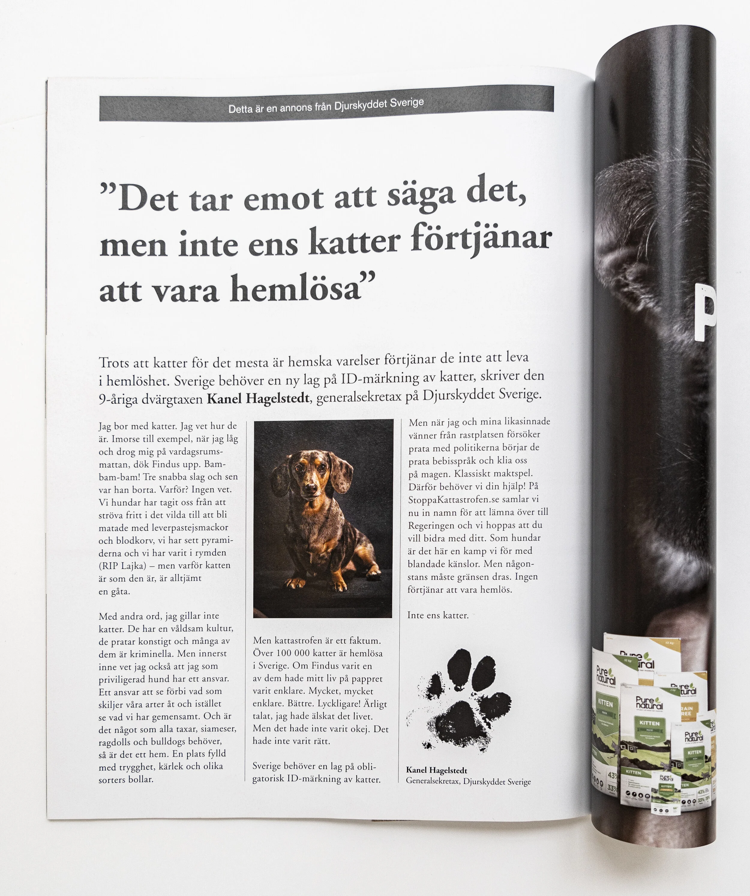 För att engagera folket i problemet med hemlösa katter tog vi hjälp av de som minst av allt kan tänkas bry sig. För om till och med hundar kämpar för katter, så vore det ganska hjärtlöst av oss människor att inte göra detsamma.